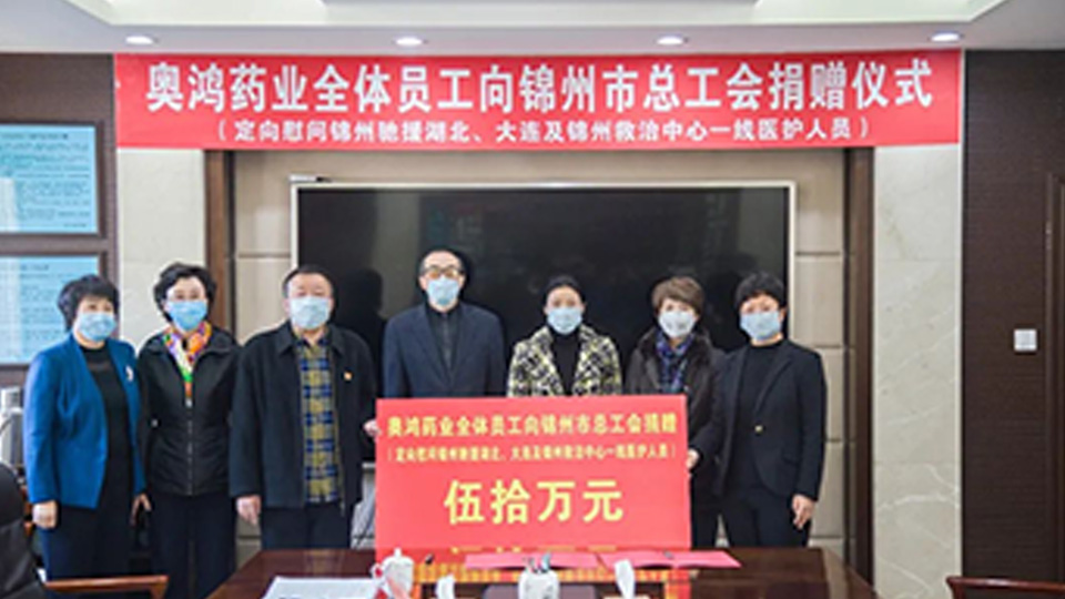 据统计,,,,,,从1月27日至今,,,,,,奥鸿药业已累计为辽宁省和锦州市捐赠防护服4100件、防护口罩6600个、防护手套2000副、防护鞋套2000双,,,,,,捐钱人民币250万元。。。。。。。。